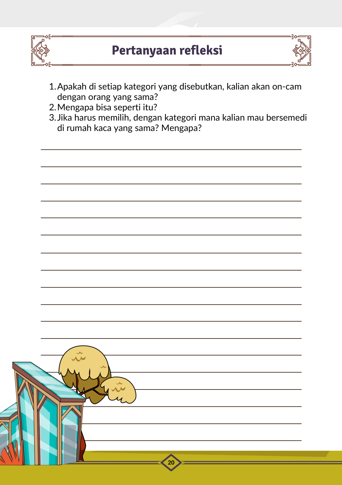 Modul disusun secara tematik dan bertahap, dimulai dari pengenalan identitas hingga pada pemahaman terhadap keberagaman dan dinamika sosial. Disisipkan refleksi pribadi, diskusi kelompok, dan studi kasus.